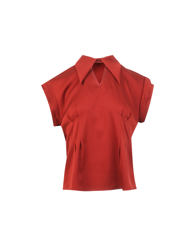 Silhouette : A straight fit with a unique V-neck collar and sleeveless design