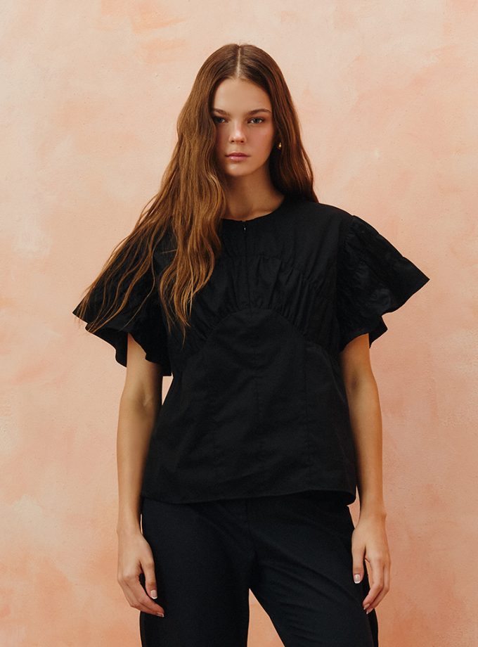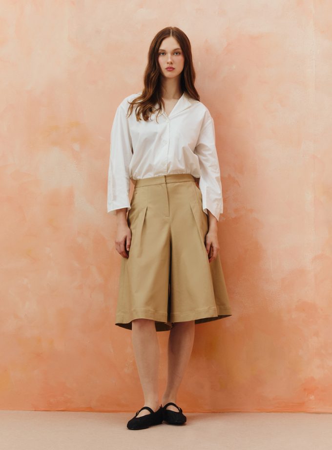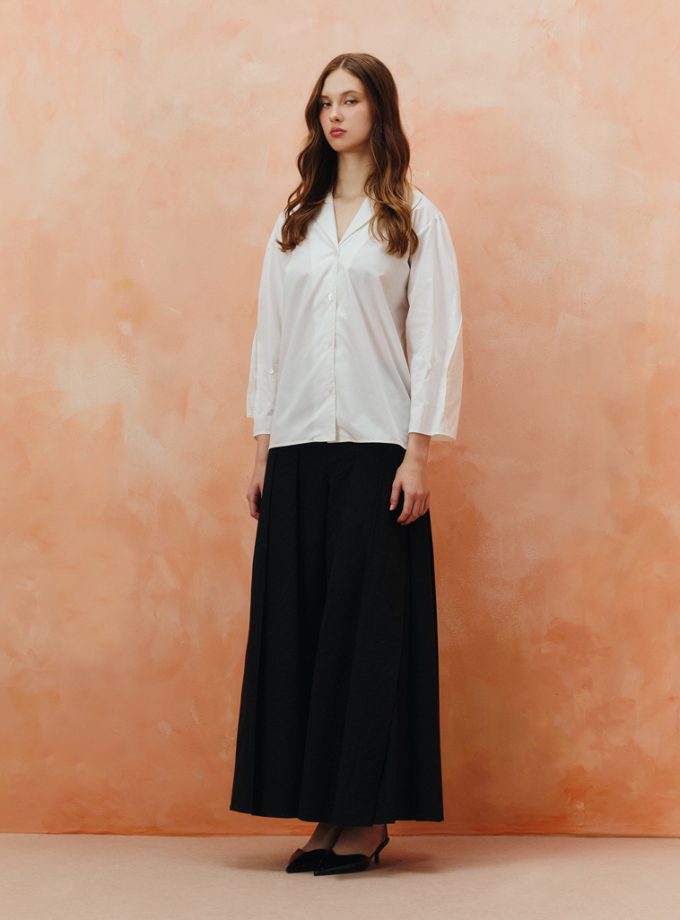 Detail : จัมป์สูทขายาว ทรงกว้าง ดีไซน์แขนกุด คอวี ลำตัวต่อชิ้นด้วยแนวตัดบล็อก (panel block) ช่วยสร้างมิติและ movement เน้นความโปร่งพลิ้วตามสไตล์แอฟริกัน-แขกมัวร์ ผสมกับลายผ้า Ikat โมทีฟที่ได้แรงบันดาลใจจากการทอพื้นถิ่นเชื่อมโยงวัฒนธรรม Moorish และ African Tribal โทนสี earth tone สลับดำ-เบจ สวมใส่ง่าย สร้างลุคโบฮีเมียนร่วมสมัย เหมาะกับเทรนด์ ethnic remix AW25