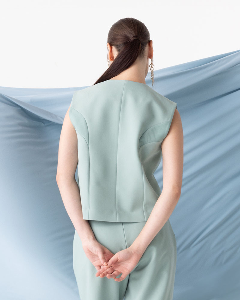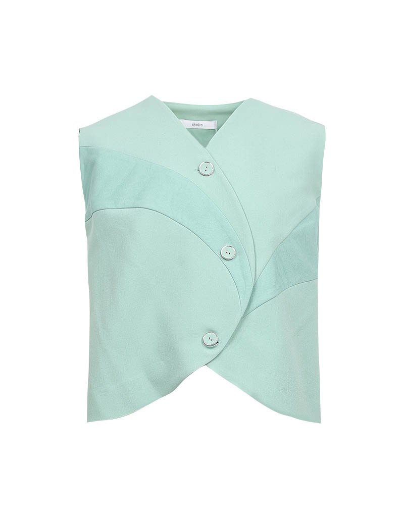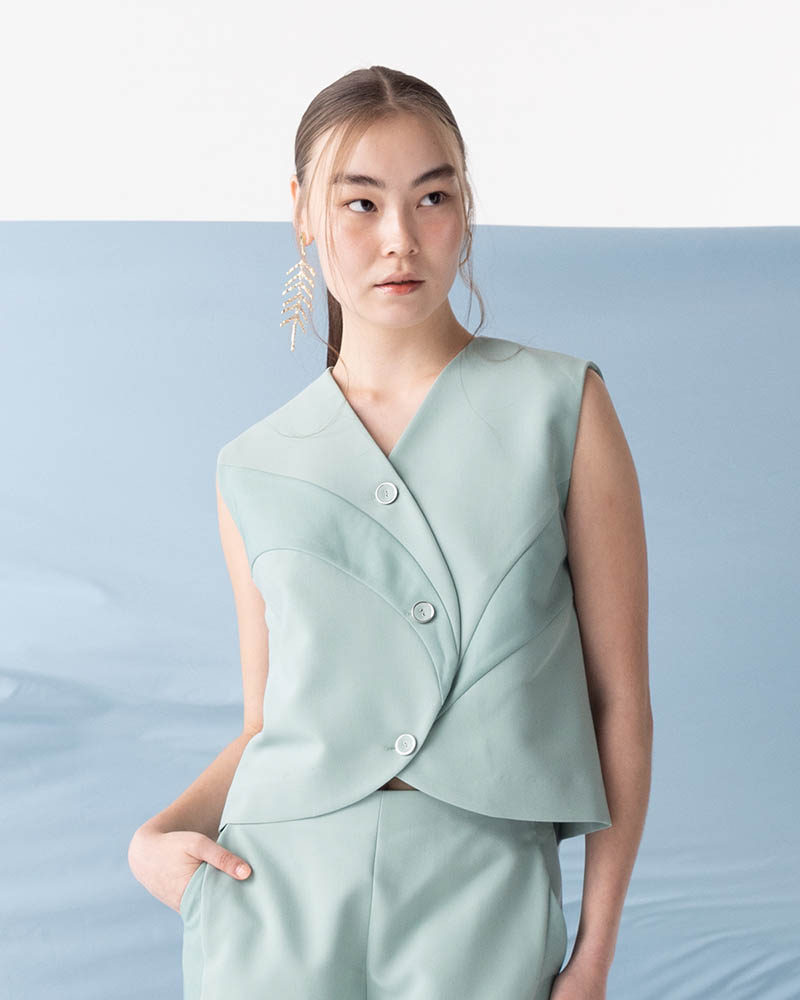 Detail : เสื้อครอปสาบกระดุมเป็น Curveโค้ง ถึงชายเสื้อ มีดีเทลตัดต่อแทรกซ้อนผ้าตาข่าย จังหวะของเส้นตัดต่อรับกับช่วงตัวและสาบกระดุม เป็นไอเท็มเรียบง่ายที่มีความพิเศษอยู่ในตัว มีกางเกงที่เข้าชุดกัน สวมใส่ได้หลายโอกาส
