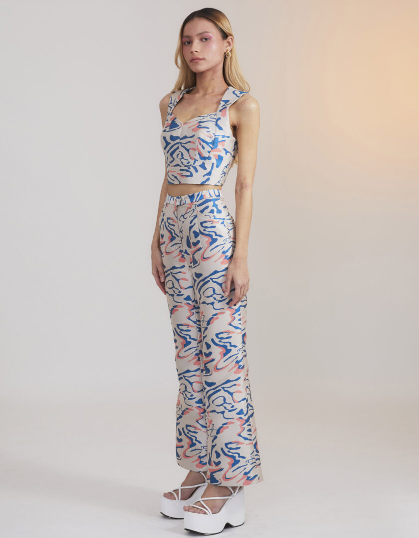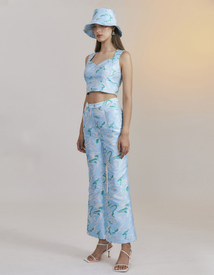 ITEM : Aqua Jacquard Cropped Bell Bottom Pants