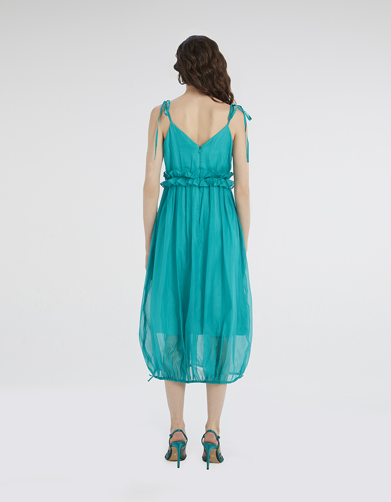 Silhouette : เดรสยาว ทรง Balloon ซิปซ่อนกลางหลัง ซับในยาวคลุมเข่า