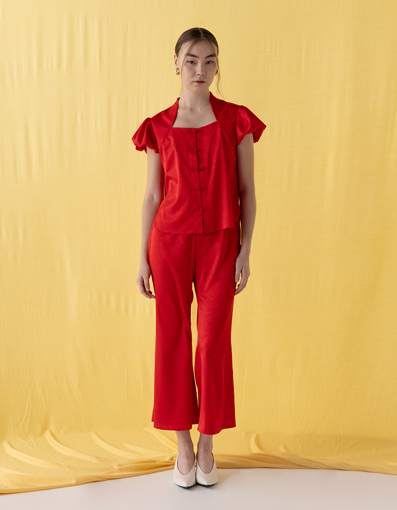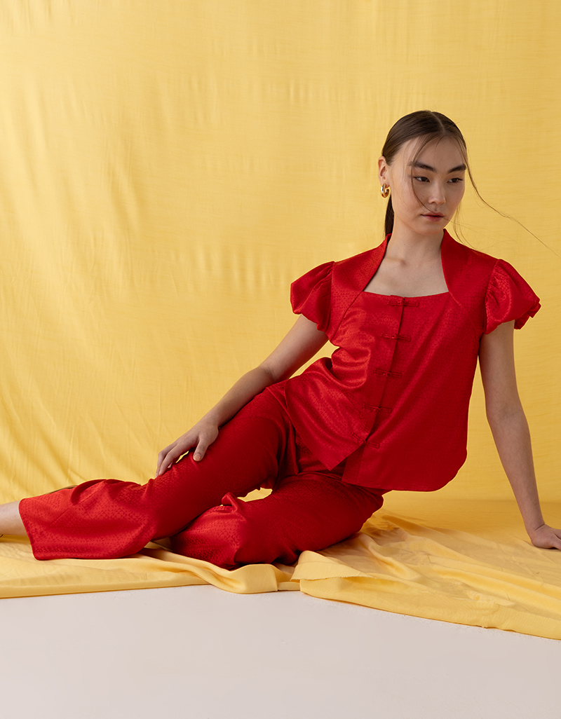 Detail : กางเกงทรงขากระดิ่ง เนื้อผ้าซาตินสวมใส่สบาย ขอบเอวในตัว ใส่ซิปซ่อนหลัง เหมาะสำหรับงานเฉลิมฉลองช่วงเทศกาลตรุษจีน ผ้าซาตินมีลักษณะที่เงางาม เสริมลุคให้ผู้สวมใส่ดูหรูหรา