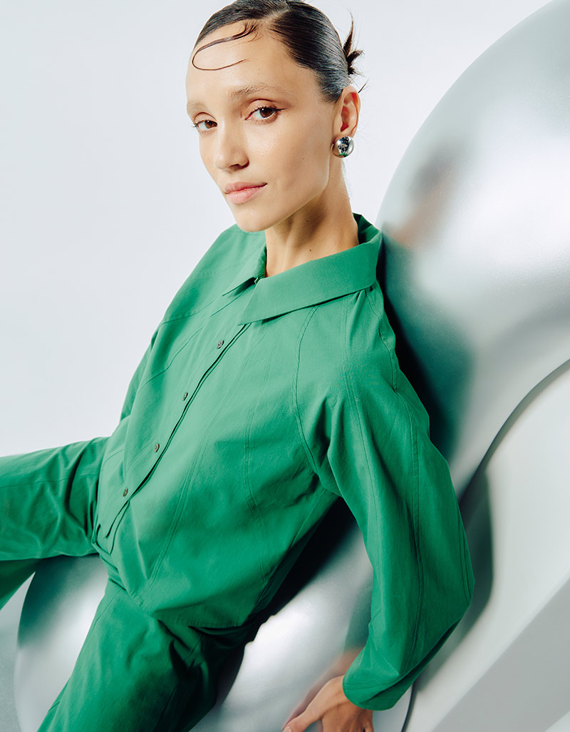 Detail : เสื้อ blouse กึ่ง jacket ปกเชิ้ต แขนยาว มีลูกเล่นเส้นตัดต่อ ตามแนวของเสื้อ สามารถใส่ได้ในหลายโอกาส
