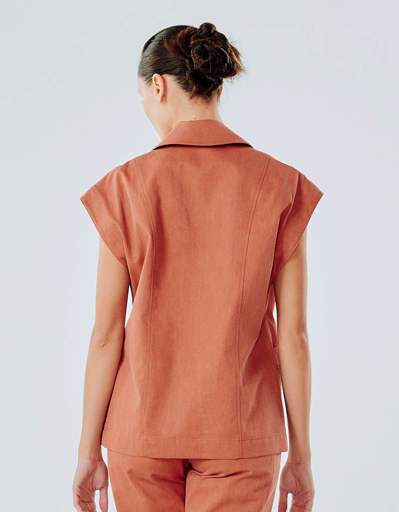 Detail : เสื้อกั๊กแขนล้ำ ทรงกระบอก ปกสูท สาบหน้าติดกระดุมสามเม็ด มีดีเทล S Mark ที่ปากกระเป๋า