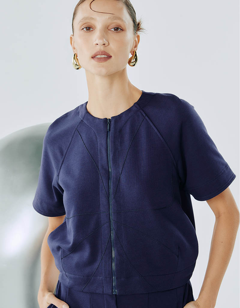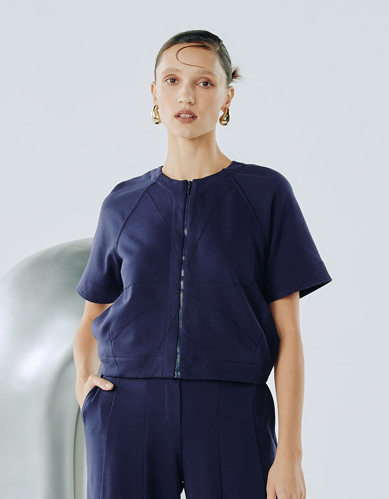 Detail : เสื้อยืด French Terry ติดซิปถอดได้ ต่อไหล่ Slope โครงเสื้อ Relax Fit ชายเสื้อสอบเข้าด้วยเกล็ดทรง ทั้งด้านหน้าและหลัง ตัวเสื้อมีดีเทลเดินเส้นโซ่ เป็นลายปีกผีเสื้อ สวมใส่กับกางเกงเป็น look set สำหรับการเดินทางได้