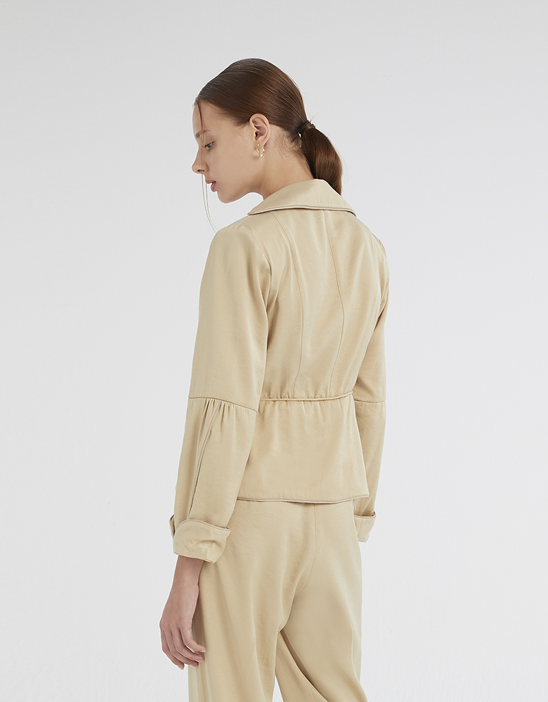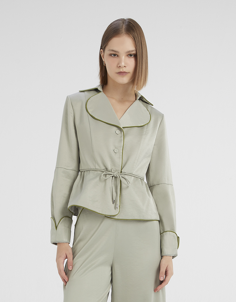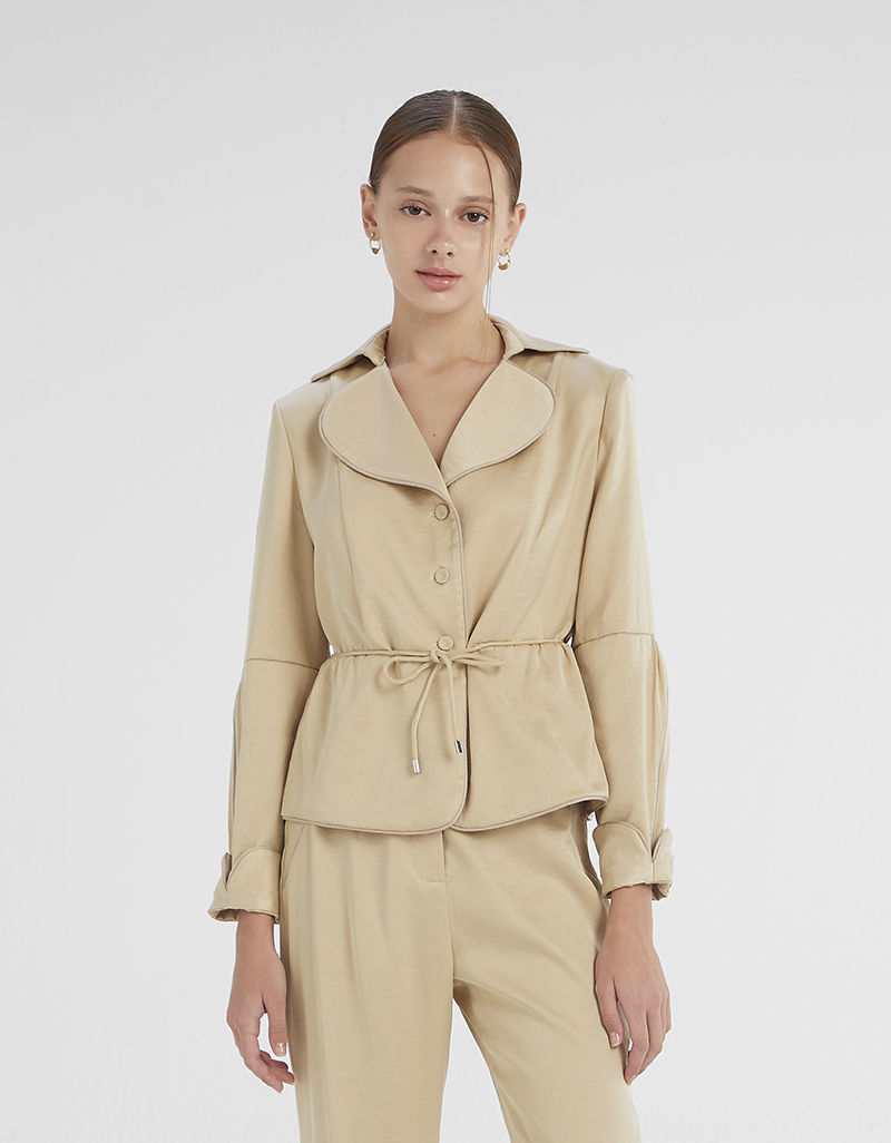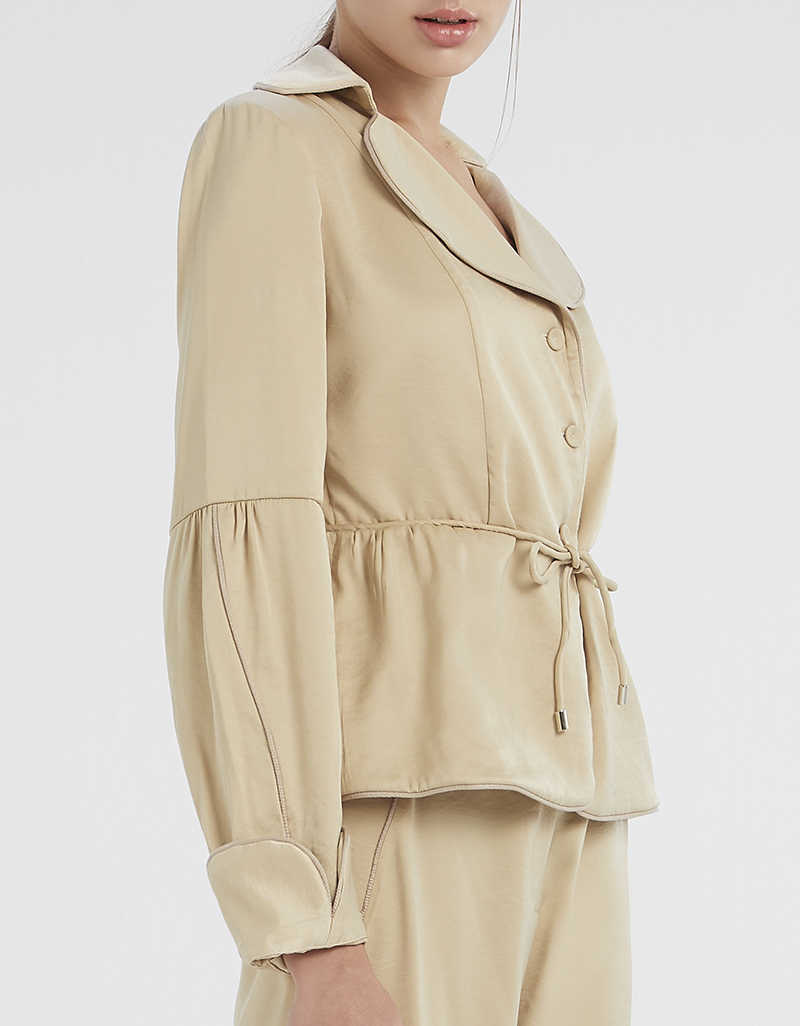 Detail : เสื้อแขนยาวสามารถสวมใส่เป็นเสื้อตัวเดี่ยวหรือตัวคลุมก็ได้ เนื้อผ้าให้น้ำหนักดี ไม่หนามาก มีเชือกกุ๊นแต่งตัดต่อช่วงเอว ชายเสื้อ ปก และปลายแขน โทนสีออนโทน