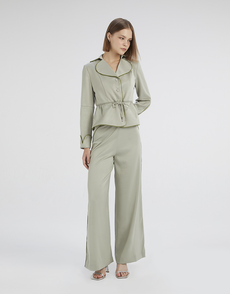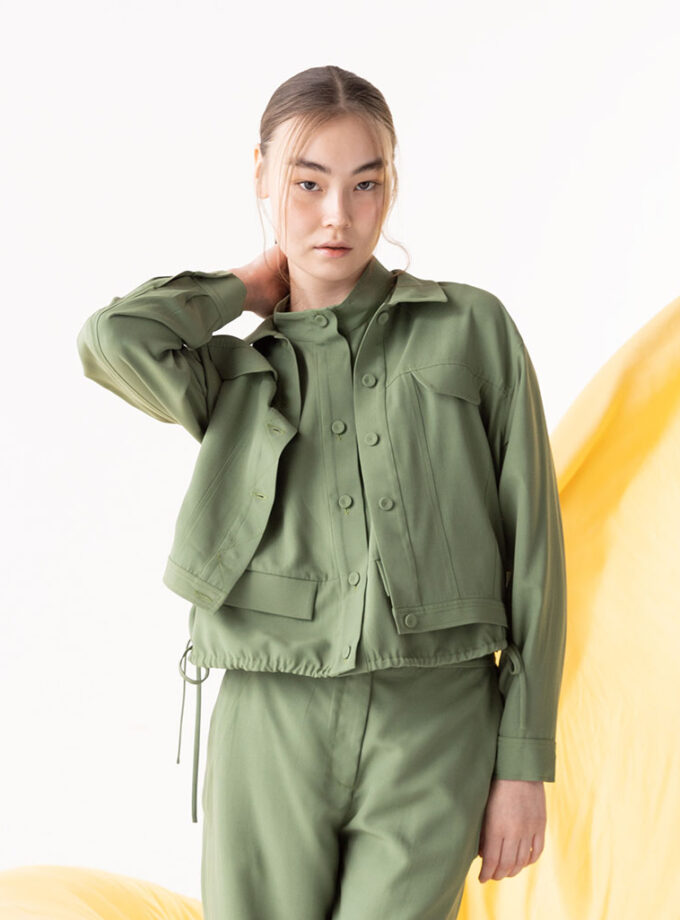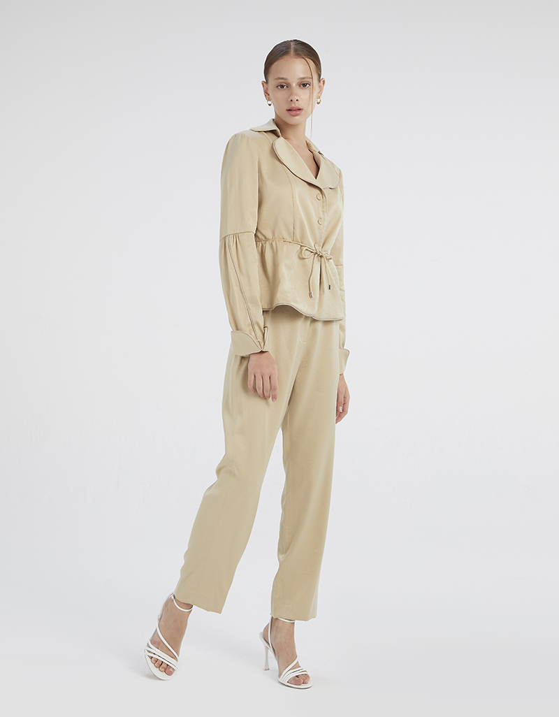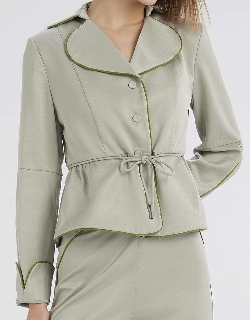 Detail : เสื้อแขนยาวสามารถสวมใส่เป็นเสื้อตัวเดี่ยวหรือตัวคลุมก็ได้ เนื้อผ้าให้น้ำหนักดี ไม่หนามาก มีเชือกกุ๊นแต่งตัดต่อช่วงเอว ชายเสื้อ ปก และปลายแขน โทนสีออนโทน