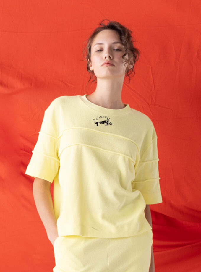 IRON : IRON ON LOW HEAT IF NECESSARY (IT CAN MELT IN HIGH TEMPS)
