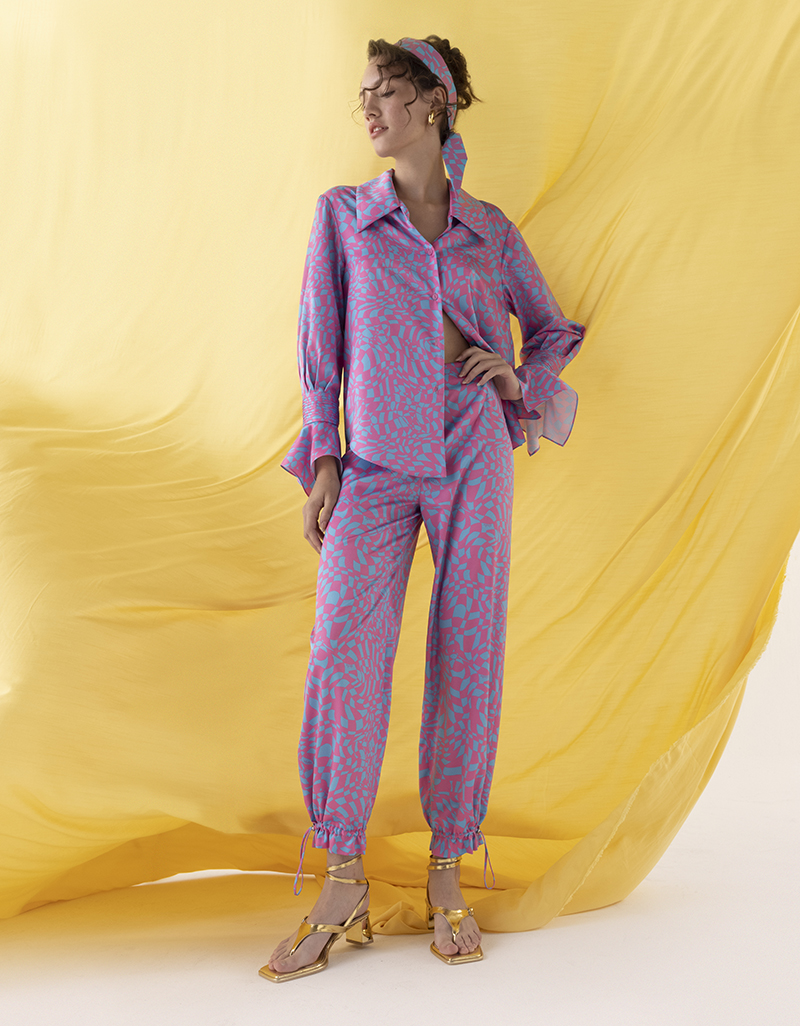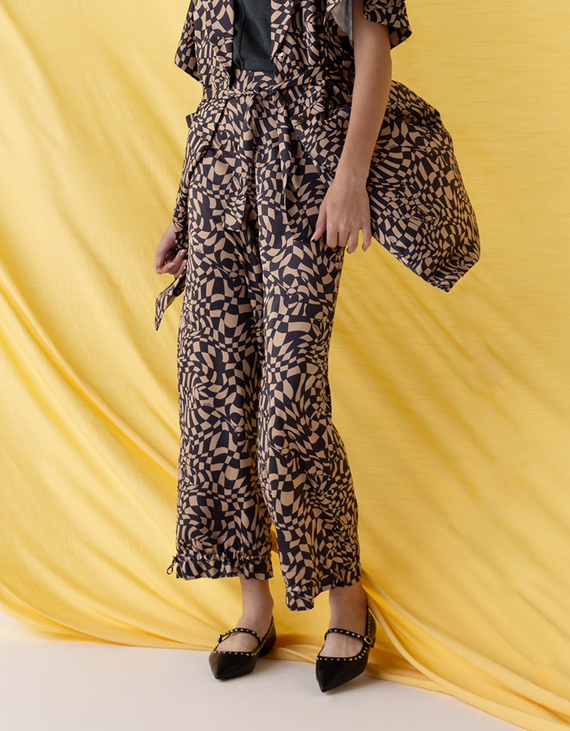 Detail : กางเกงขายาว พิมพ์ลาย Original ของ Shaka “Retro cloud” ทรงขาตรง ปลายขามีตัดต่อสายรูด stopper สามารถใส่จั๊มปลายขาหรือปล่อยขาตรงได้