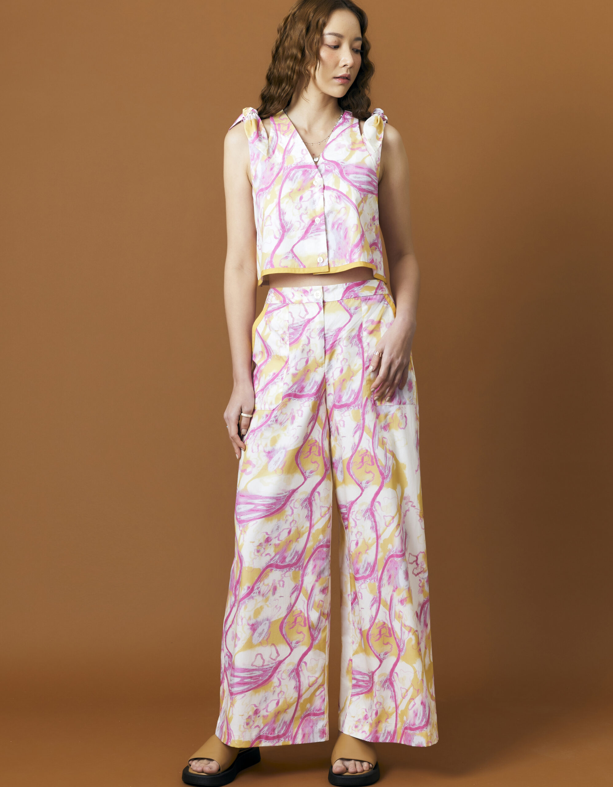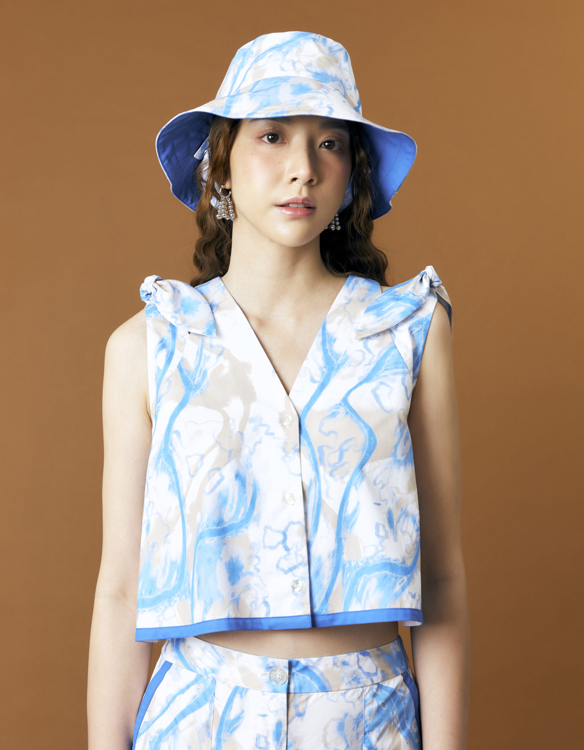 Detail : เสื้อผ้าฝ้ายแขนกุด พิมพ์ลาย Original สีสันสดใส คอวีลึกติดกระดุมหน้า เหมาะกับช่วงซัมเมอร์ ดีเทลผูกโบว์สำเร็จตรงไหล่ ชายเสื้อต่อขอบเป็นแถบผ้าพื้นสีแต่ง