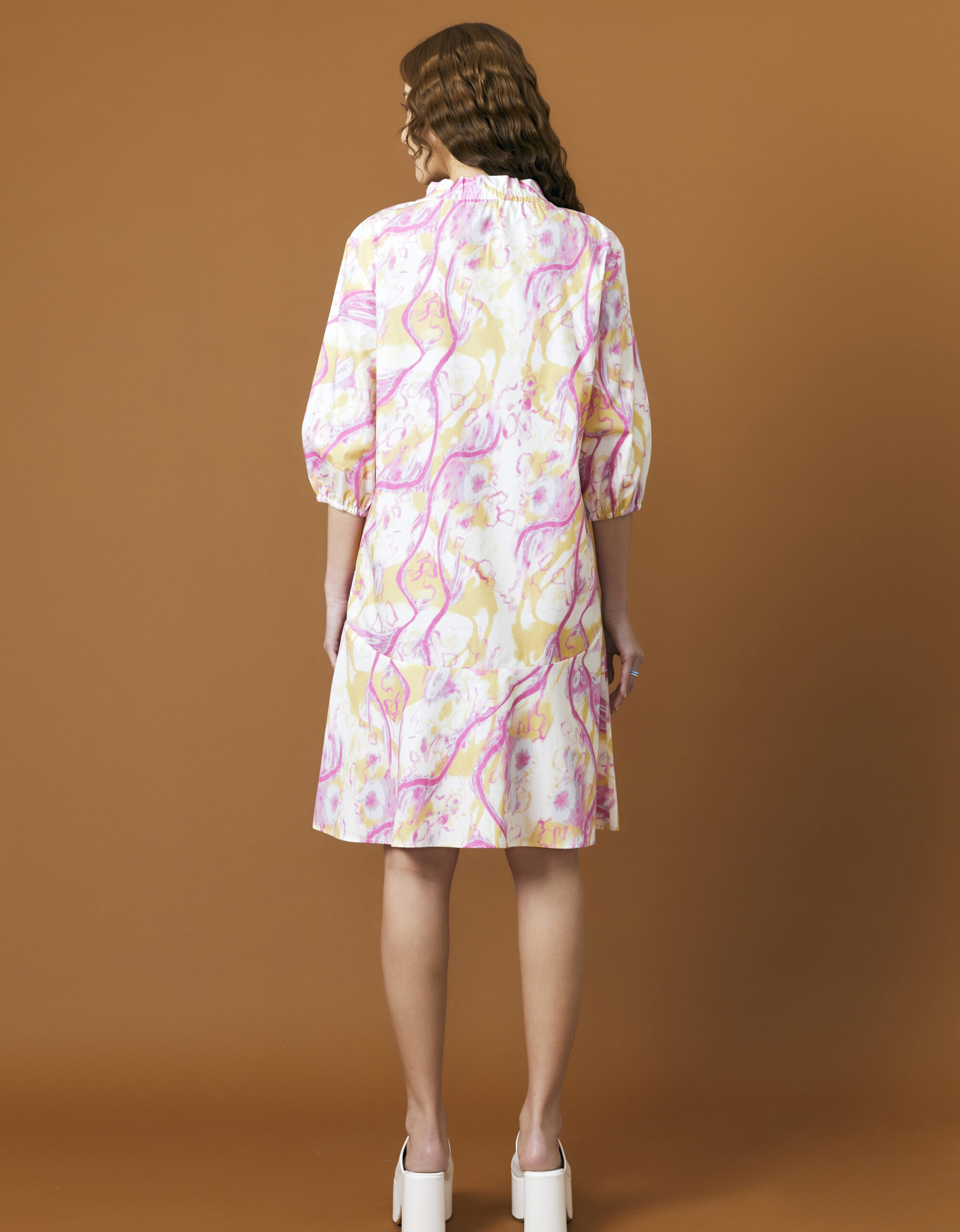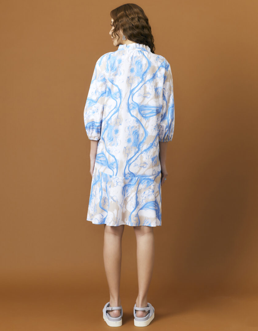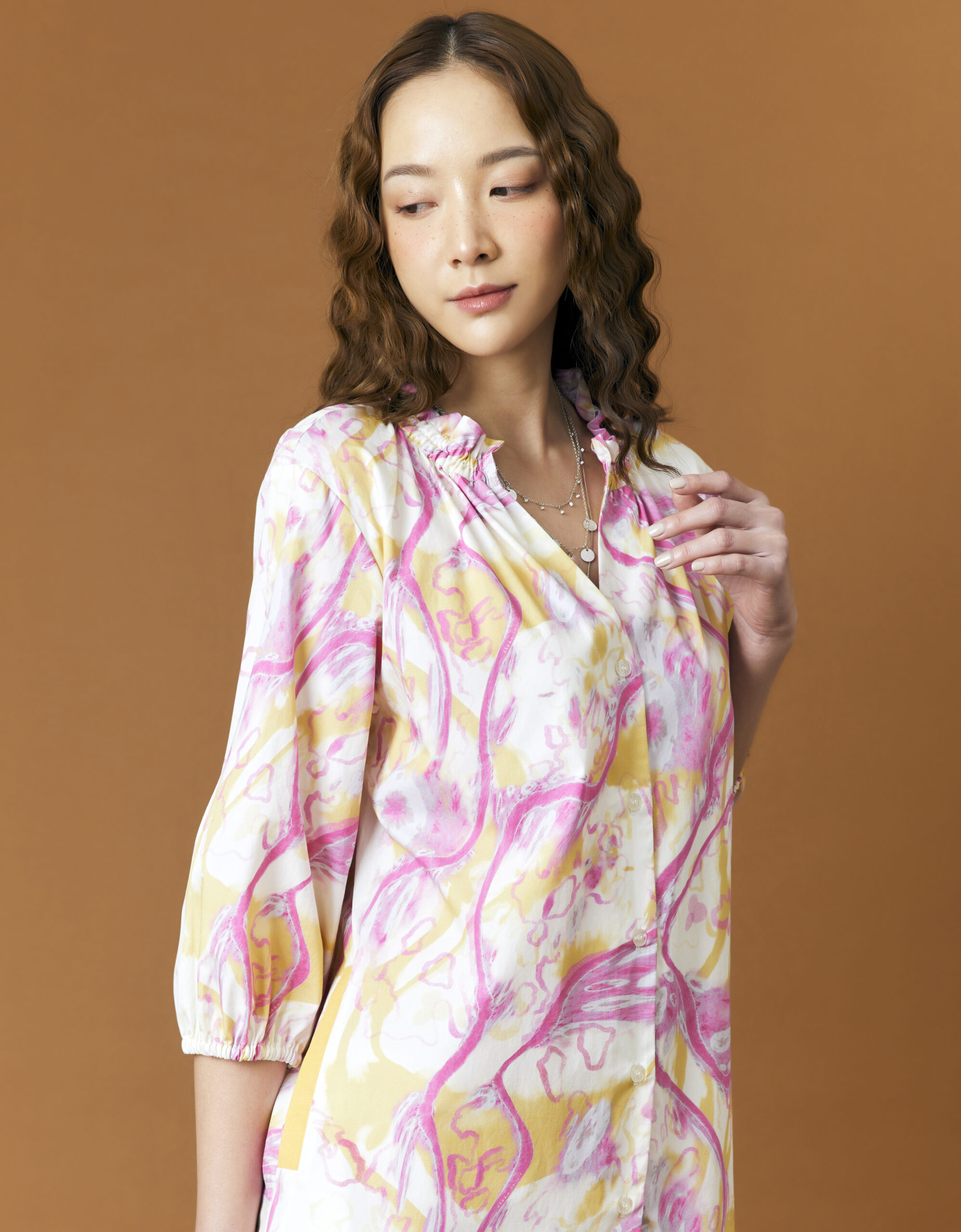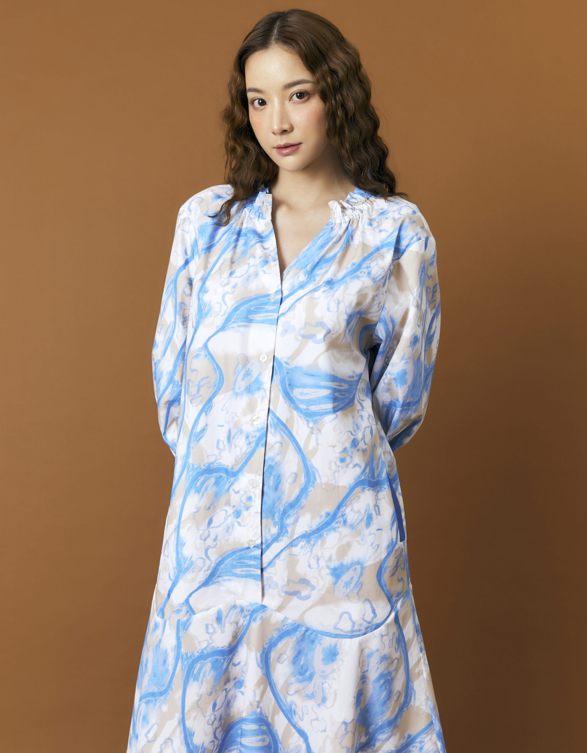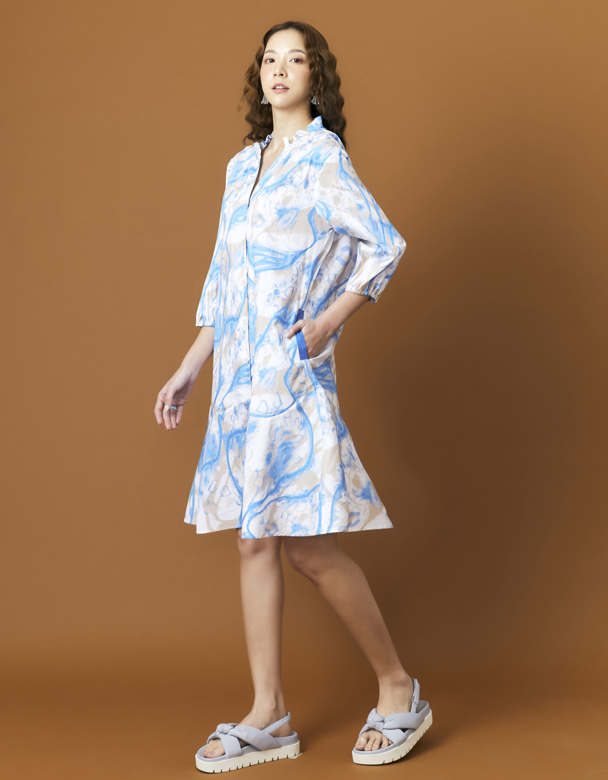 Detail : เดรสผ้าฝ้ายแขน 4 ส่วน พิมพ์ลาย Original สีสันสดใส ลวดลายออกแบบให้มีเสน่ห์ของเทคนิคมัดย้อม คอเสื้อต่อขอบรูดระบายสอดยางยืดตรงวงคอ เจาะคอวีติดกระดุมหน้าถึงแนวตัดต่อชายเดรส ตัวเดรสมีกระเป๋าข้างต่อขอบปากกระเป๋าสีแต่ง ทรงชุดสวมใส่สบาย ต่อชายเดรสแยก flare เป็น curve