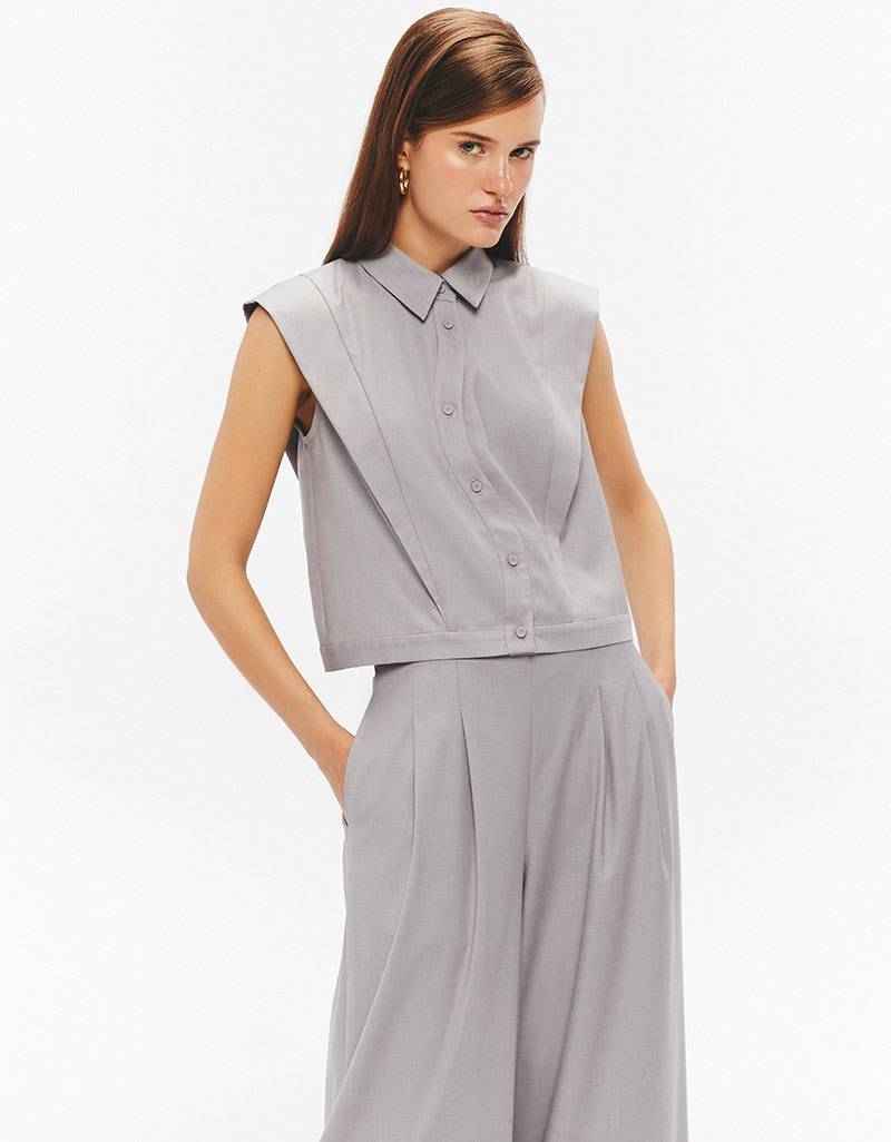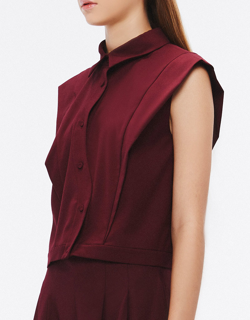 Detail : เสื้อแขนกุด ปกเชิ้ต แต่งดีเทลตรงไหล่ ทำให้ดูเท่ห์ และมีเสน่ห์ ความยาวระดับเอว สาบเสื้อมีดีเทล “S” Mark สามารถใส่ Mix & Match ได้ทั้งกางเกงและกระโปรง