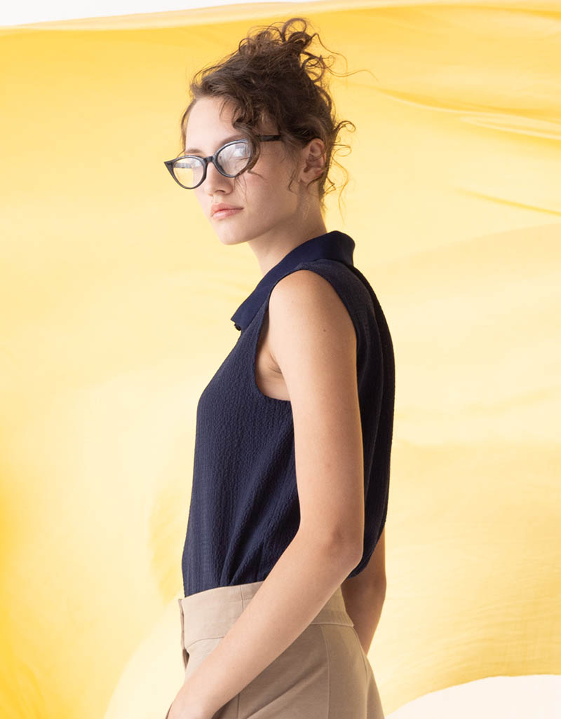 Detail : เสื้อแขนกุด ใส่สบาย เนื้อผ้าแบบเฟมินีน มีดีเทล Twist ปกโปโล ติดกระดุมคล้องห่วงไส้ไก่ เนื้อผ้าโปร่งเบา ทอให้เกิด Tuxture ย่นละเอียด มีความยืดหยุ่นในตัว เป็นเสื้อลุคสบาย สวมใส่ได้ในทุกๆโอกาส